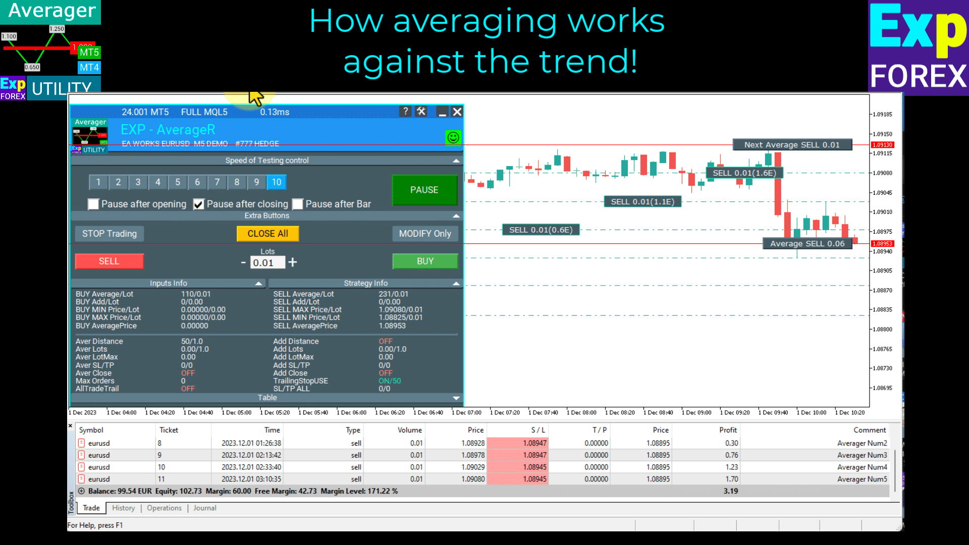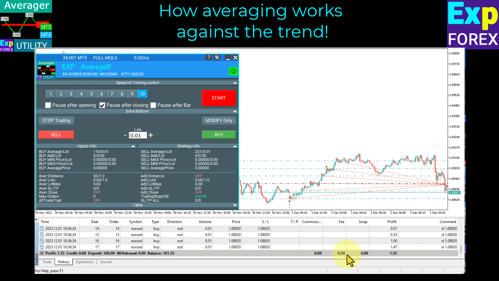 Exp-Averager is designed for averaging deals that have experienced a certain drawdown and did not follow the trend.