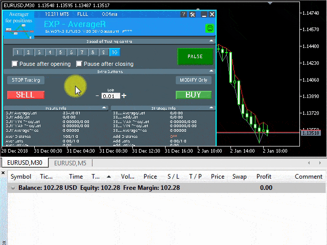 Strategie der Durchschnittsbildung:Das Averager-Tool wird häufig von Tradern verwendet, um verlustreiche Positionen durch das Öffnen neuer Positionen in derselben Richtung, jedoch auf unterschiedlichen Preisniveaus, auf den Durchschnittspreis zu bringen. Dies hilft, Verluste zu minimieren und Positionen effizienter zu verwalten.