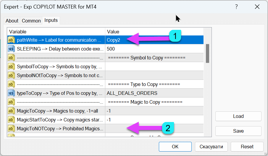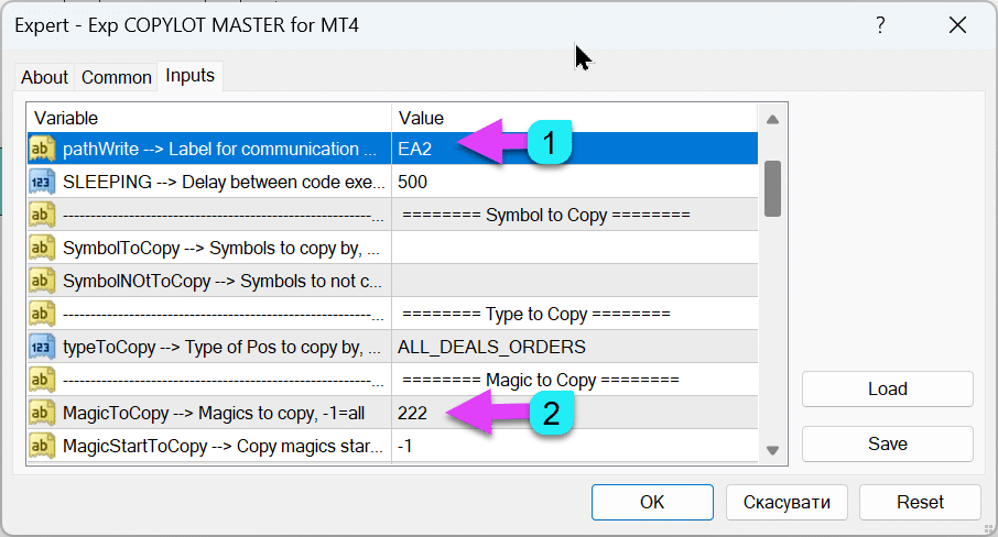 - How to Copy from One Terminal and Two Different Expert Advisors to the Second Terminal with Different Parameters