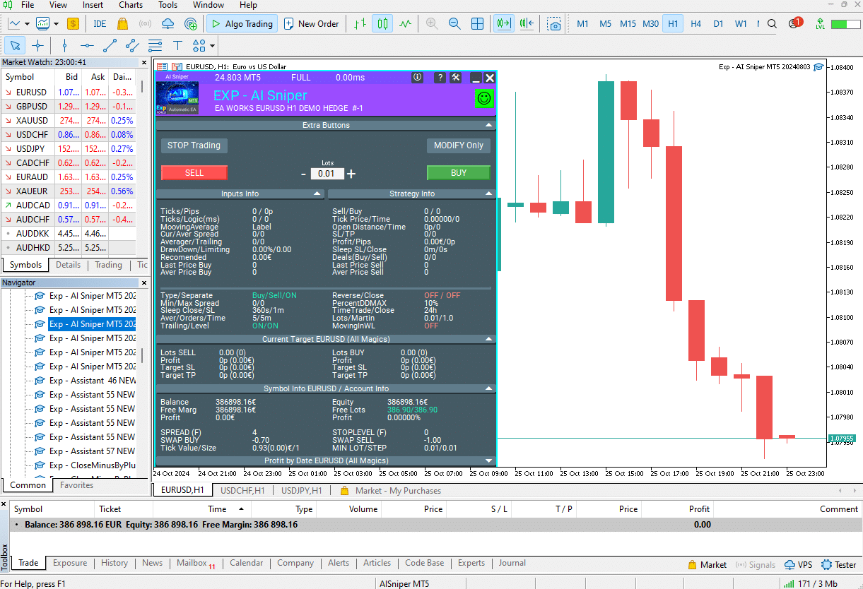 We also tested the open positions using the TickSniper advisor on the MetaTrader 5 server.