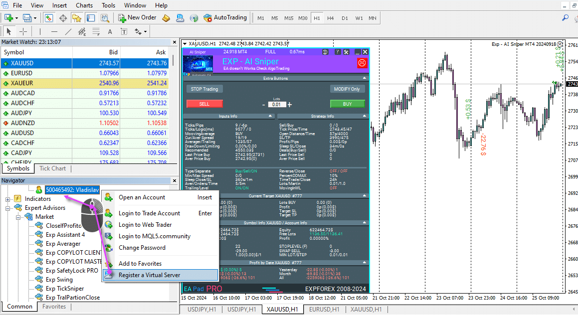 After setting up all the charts, accounts, advisors, and settings, you need to register a virtual server.