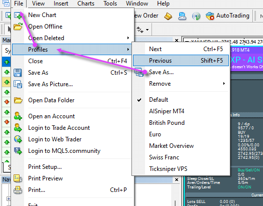 3. Save the profile with the installed Expert Advisors and graphics to load the user’s profile in the future (My recommendation).