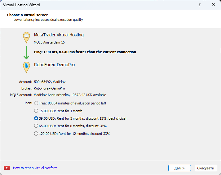 VPS from MetaQuotes in MetaTrader 5