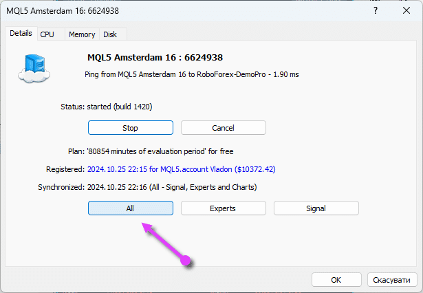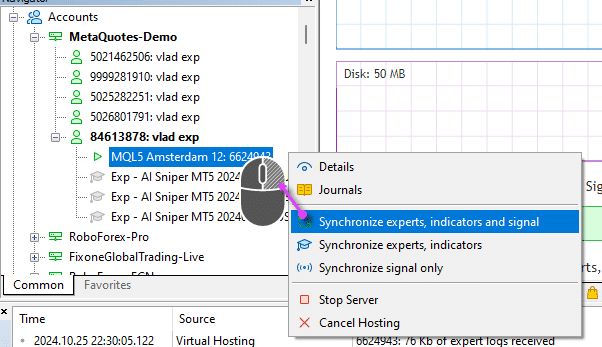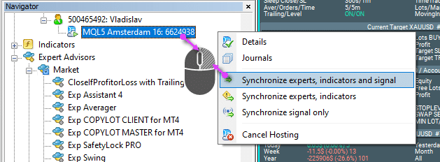 After making changes to the settings or setting new advisors, you need to synchronize the VPS to work with your terminal!