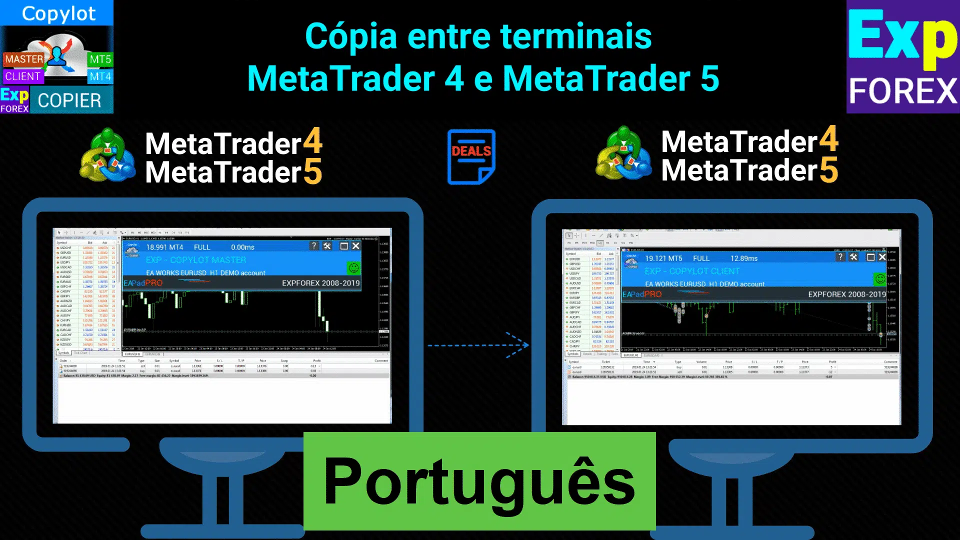 10:00 Como copiar de 2 terminais, MetaTrader 4 e 5, para um terminal, MetaTrader 5Links do YouTube: