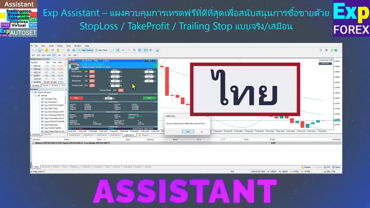 Exp Assistant คือผู้ช่วยผู้เชี่ยวชาญสำหรับ MetaTrader 4 (MetaTrader 4) และ MetaTrader 5 (MetaTrader 5) ที่คุณกำลังมองหา