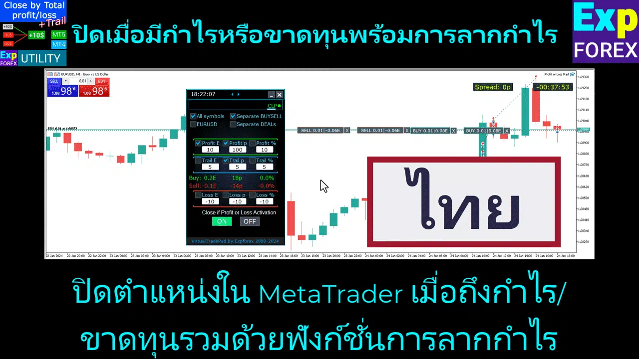 เมื่อตั้งค่าแล้ว ให้กดปุ่ม ON เพื่อเริ่มการตรวจสอบ และ EA จะปิดสถานะโดยอัตโนมัติเมื่อถึงเกณฑ์การขาดทุนที่คุณกำหนดไว้ล่วงหน้า