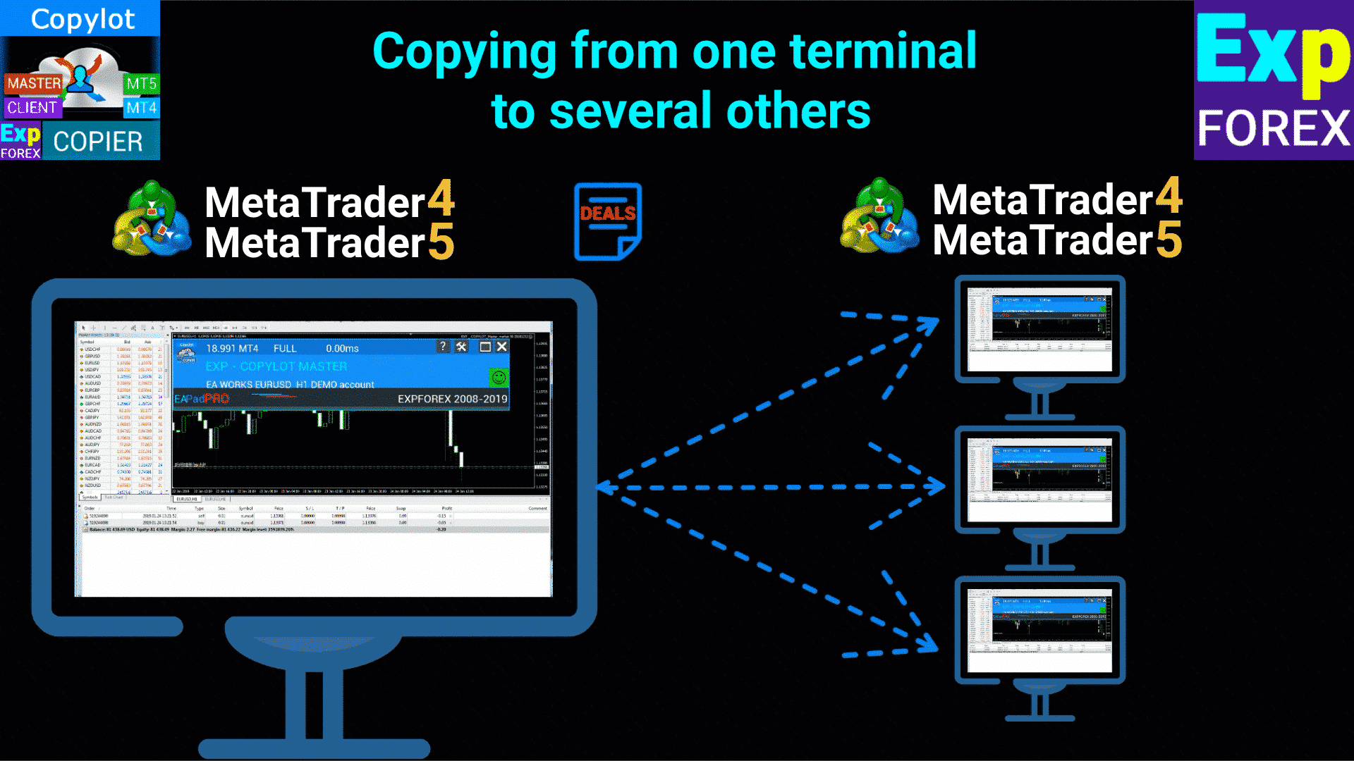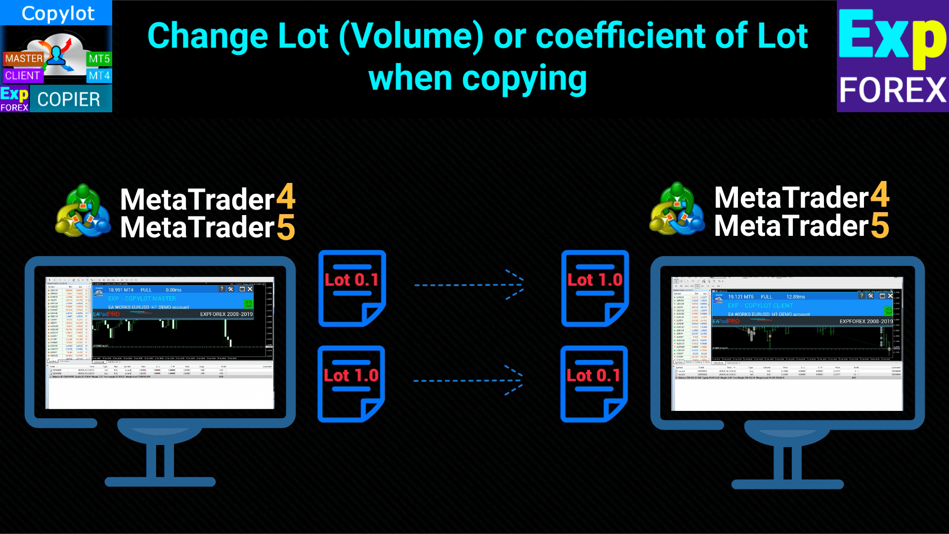 - Sử dụng nó như một bộ đồng bộ hóa (synchronizer) cho các giao dịch của bạn trên nhiều tài khoản khác nhau bằng cách giao dịch trên một tài khoản – COPYLOT sẽ sao chép các giao dịch của bạn sang các thiết bị đầu cuối khác.