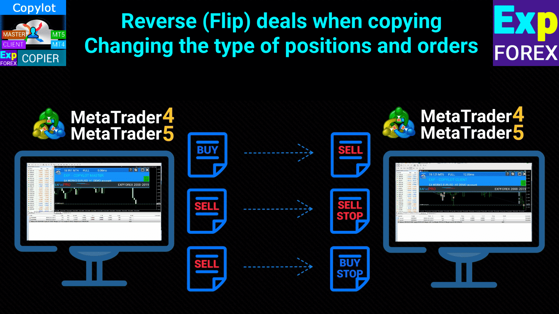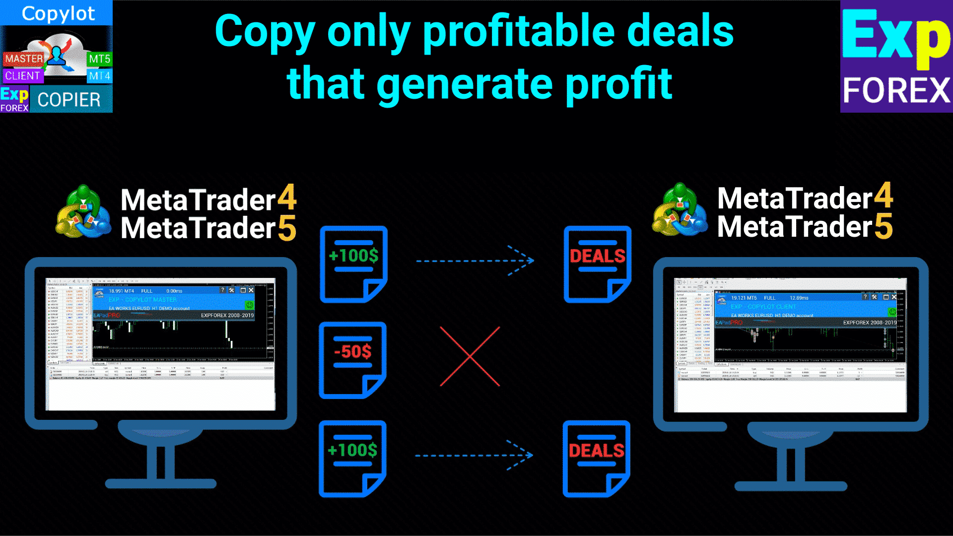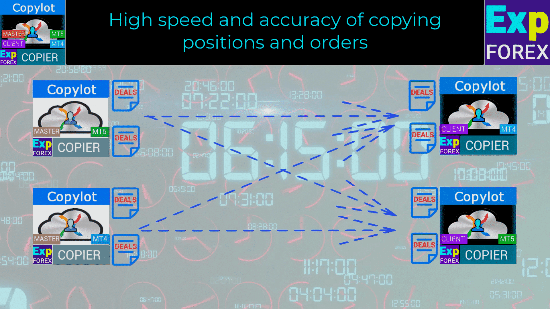 El exclusivo algoritmo de copia garantiza que todas las posiciones (operaciones) de la cuenta maestra se copien exactamente en su cuenta cliente.