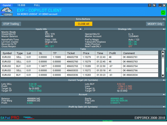 Der einzigartige Kopieralgorithmus stellt sicher, dass alle Positionen (Trades) vom Hauptkonto exakt auf Ihr Kundenkonto kopiert werden. Dieses Produkt ist bekannt für seine hohe Geschwindigkeit und robuste Fehlerbehandlung und wird mit einer leistungsstarken Funktionssuite geliefert.