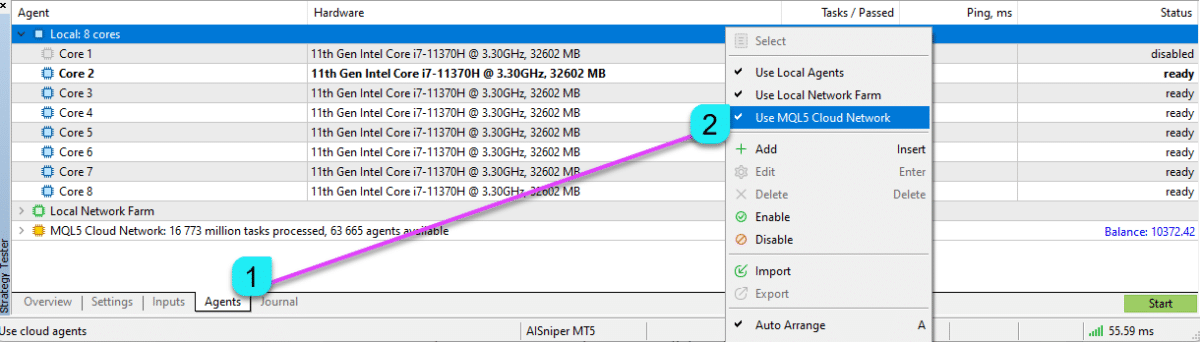 但MT5中策略测试器的主要功能当然是能够使用MQL5云网络在云中进行优化。
